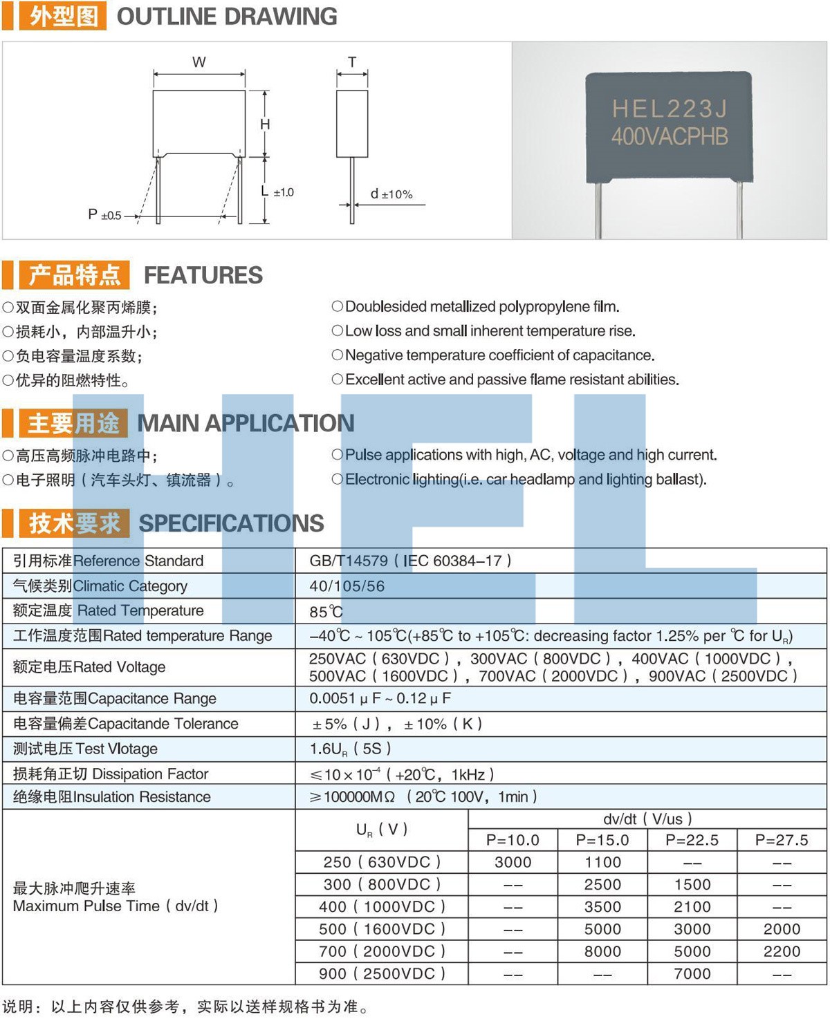 PHB DOUBLE-SIDE-METALLIZED POLYPROPYLENE FILM CAPACITOR (BOX TYPE)(MMKP84)