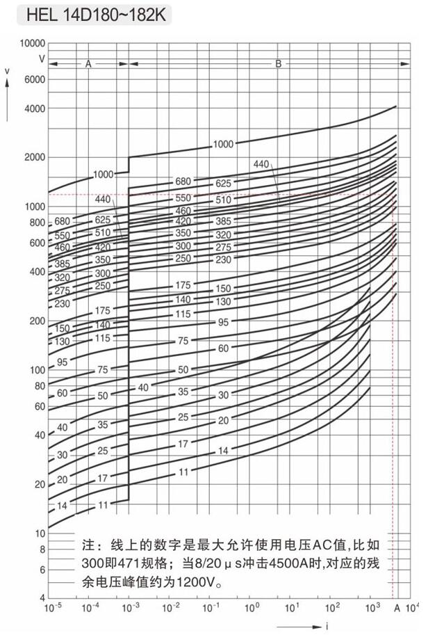 備注:上表KH超強型“電壓沖擊”40次僅適用于壓敏電壓430V及其以上規格的產品。